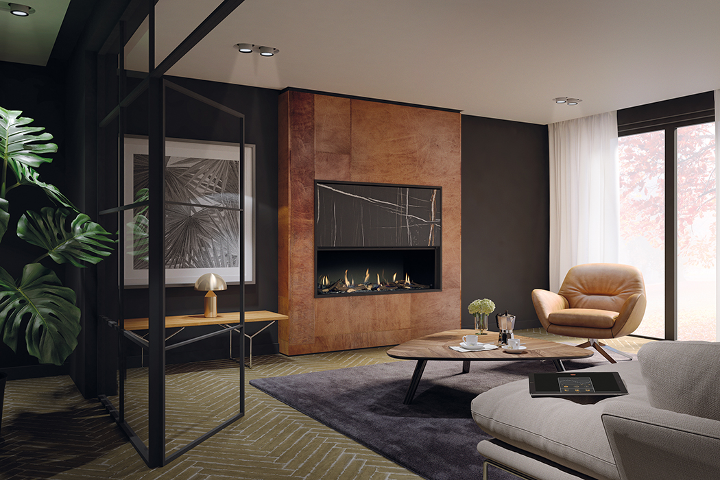 Un confort moderne : allumage instantané, flamme modulable et commande à distance.