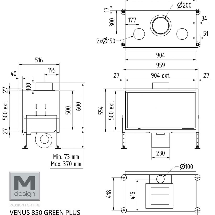 Les inserts Venus de M-design vous offrent la possibilité de raccorder l’air primaire directement au foyer. Ils fonctionnent même sans ventilateur lorsque deux sorties d’air chaud sont prévues.