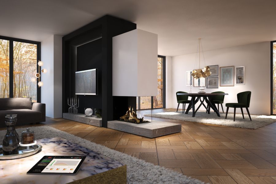 ous cherchez un foyer en épi ou un foyer où vous pouvez profiter du feu à partir de plusieurs coins de la pièce? Le foyer Maestro 75XTU Eco Wave est un foyer parfaitement adapté à cet effet. Grâce à la vue sur le feu de 3 côtés, il est possible de profiter de l'ambiance agréable et de la chaleur de cette cheminée à partir de plusieurs pièces. Très approprié pour un placement en angle, par exemple dans les salons en forme de L.