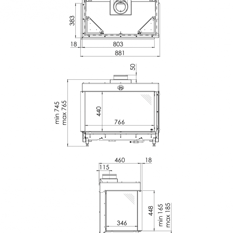 Direct flue : foyer avec un coude à 90° vers l'extérieur
