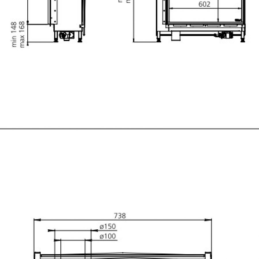 Direct Flue Directement sur le foyer avec coude 90° vers l'extérieur