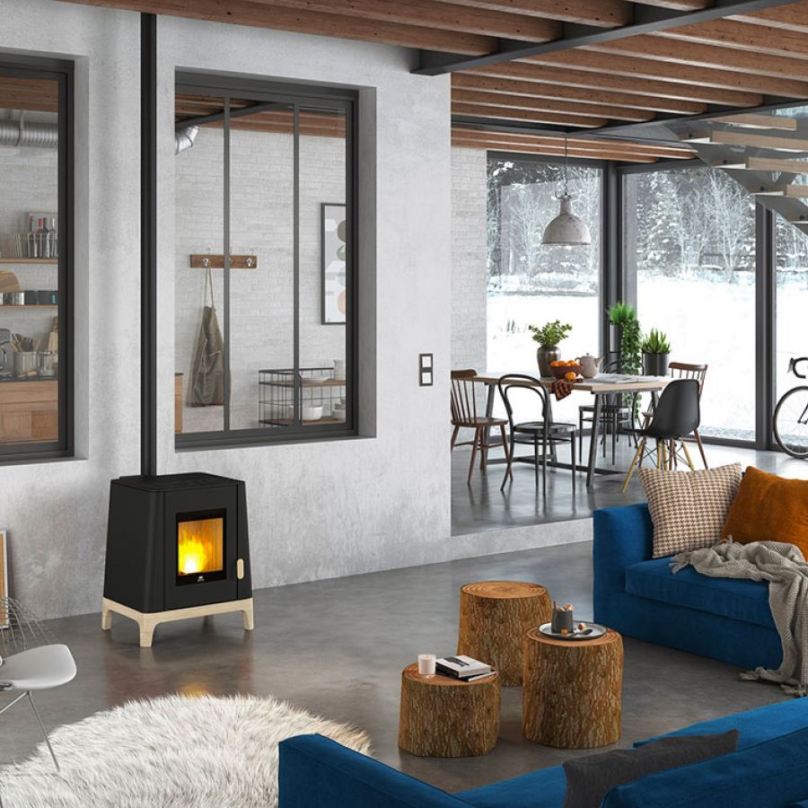 Malgré son format réduit, il offre un rendement supérieur à 90 % et une chaleur homogène, tout en assurant un fonctionnement silencieux et programmable. Son design épuré et sa façade vitrée laissent pleinement place à la flamme, apportant une touche chaleureuse et contemporaine.