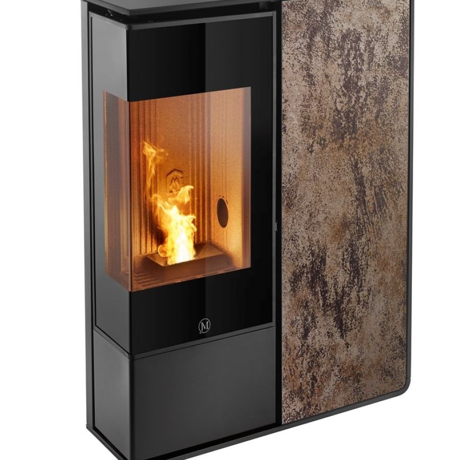 Avec sa très faible profondeur (27cm), le poêle à pellets I-Dea 2 Angolo se prête au jeu de tous les intérieurs.