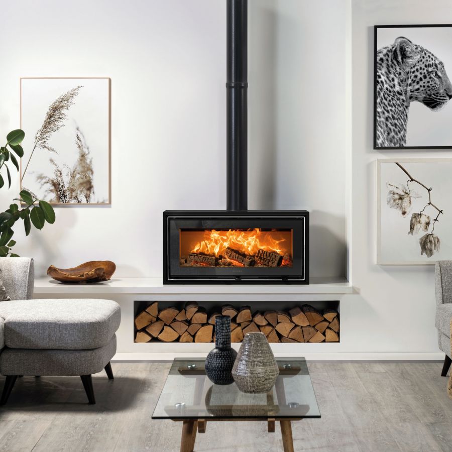 Le Studio Air 2 Freestanding offre une puissance calorifique impressionnante de 8,2 kW et une largeur de 101cm assurant une vue spectaculaire des flammes à travers sa large vitre.