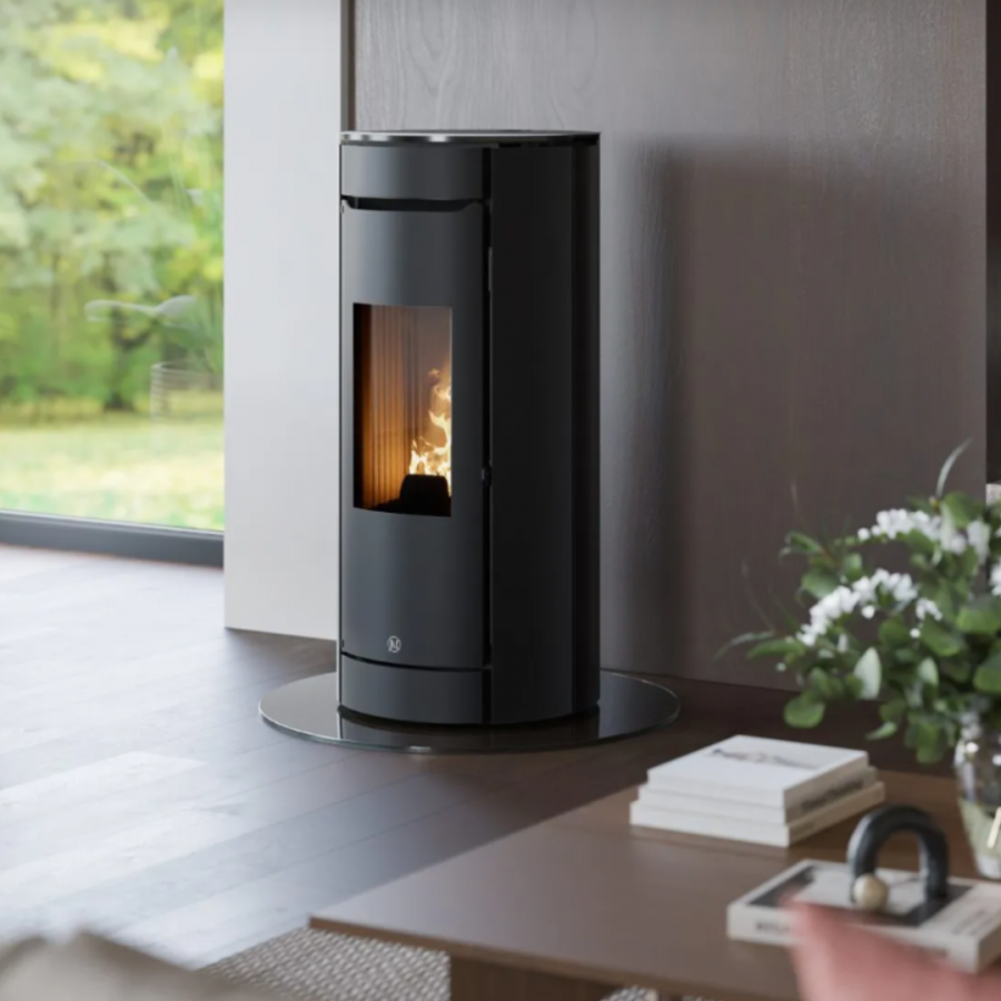 Le revêtement exclusif en verre noir mat et la porte de la chambre de combustion en verre “black magic” confèrent à ces poêles un charme et un design uniques. Grâce à la technologie “magic”, la partie centrale de la porte de la chambre de combustion dissimule l'intérieur lorsque le poêle est éteint, mais s'éclaircit pour révéler la flamme en fonctionnement, offrant ainsi une vision captivante.