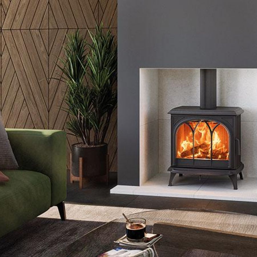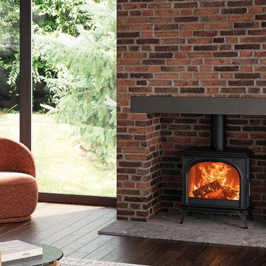 Le poêle à bois et multi-combustibles Huntingdon 40 de Stovax est un modèle de grande capacité, parfait pour chauffer de vastes espaces. Alliant le charme intemporel de la fonte à un rendement énergétique élevé (jusqu’à 76,4%), il est disponible avec des portes de style clair ou gothique. Ses technologies Cleanburn et Airwash assurent une combustion propre et une vitre toujours dégagée, tout en respectant les normes Ecodesign.