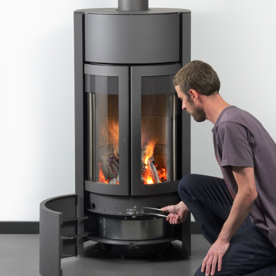 Le poêle à bois Stûv 30 se distingue par son concept innovant à 3 portes rotatives, qui offre trois modes de fonctionnement selon vos besoins : porte vitrée pour une vue sur les flammes, porte pleine pour une combustion prolongée, ou mode ouvert pour une ambiance cheminée. Ce poêle polyvalent allie esthétique et praticité pour s’adapter parfaitement à tous les intérieurs.