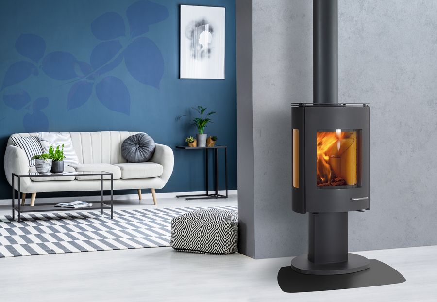 Découvrez le poêle à bois ILD 15 ECO, un modèle au design contemporain doté d'un élégant piétement piédestal.