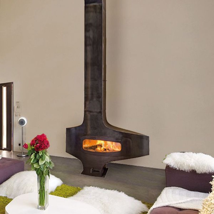 Le Hétérofocus 1400 est une cheminée murale au design sculptural, fabriquée en acier brut ciré avec des soudures apparentes, chaque exemplaire étant numéroté et signé, reflétant l'alliance de l'art, de l'artisanat et de l'architecture.