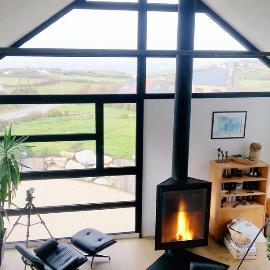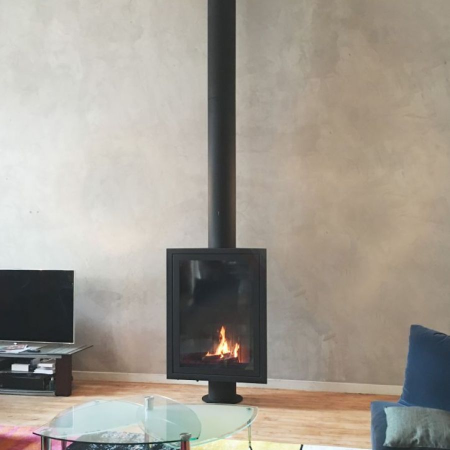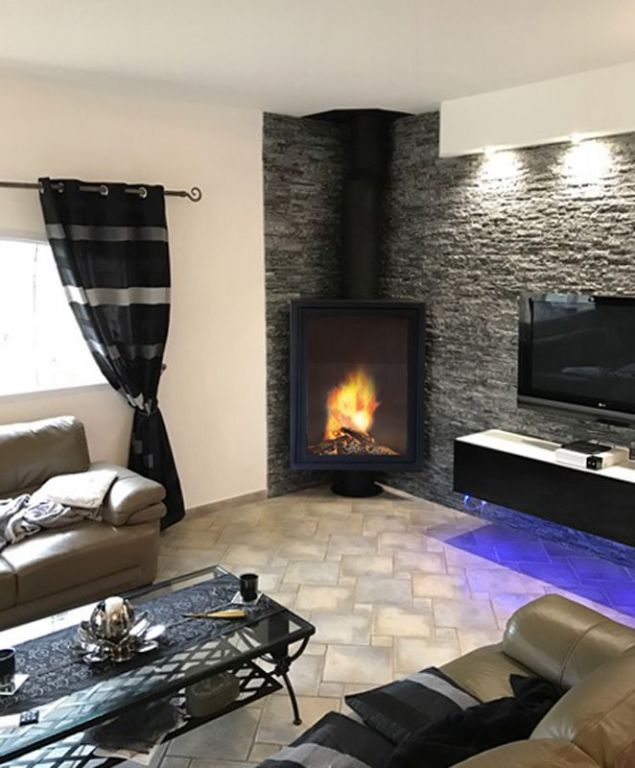 Ce modèle offre une vue panoramique sur les flammes, que ce soit en position centrale, en angle ou contre un mur plat.