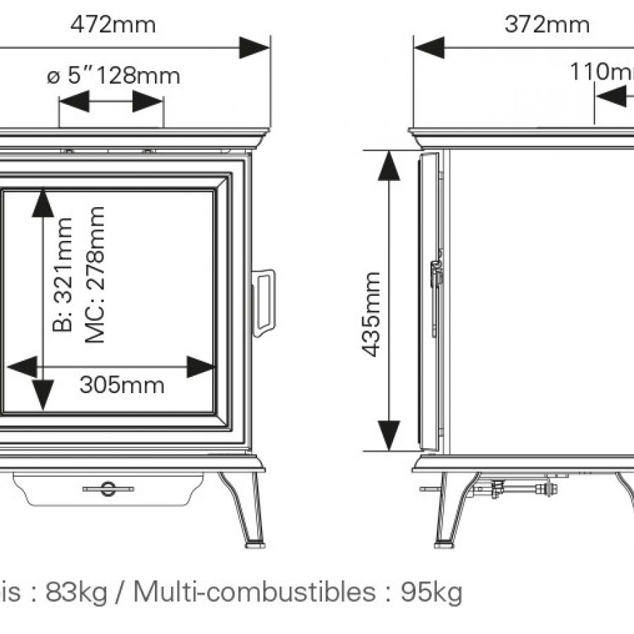 Le poêle à bois Sheraton 5 offre un design intemporel et raffiné, grâce aux détails décoratifs tels qu’une porte en fonte biseautée et des pieds longs en option, pour davantage de hauteur.