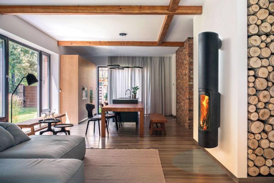 Cette version murale du Slimfocus permet une installation contre un mur, avec un raccordement à un conduit de fumée en façade, répondant ainsi aux besoins des espaces contemporains.