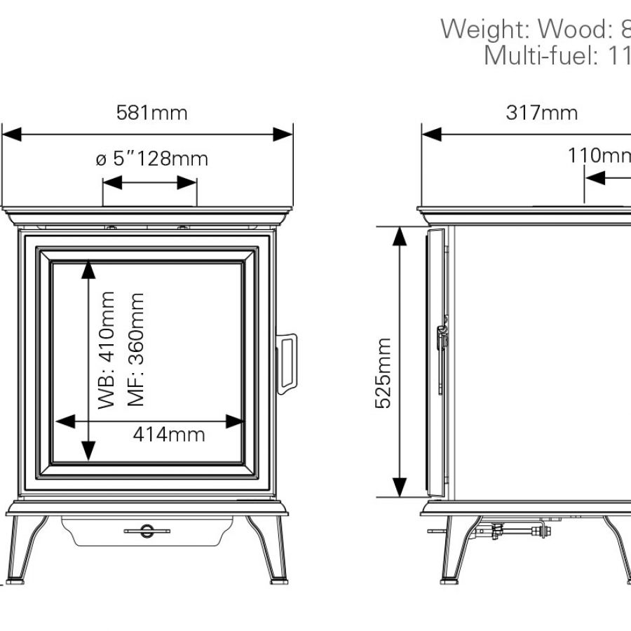 Le poêle à bois Sheraton 5 Wide offre toute l’élégance intemporelle de la gamme Sheraton, avec la variante d’une porte vitrée plus grande et un corps de chauffe moins profond, pour convenir aux pièces de taille standard.