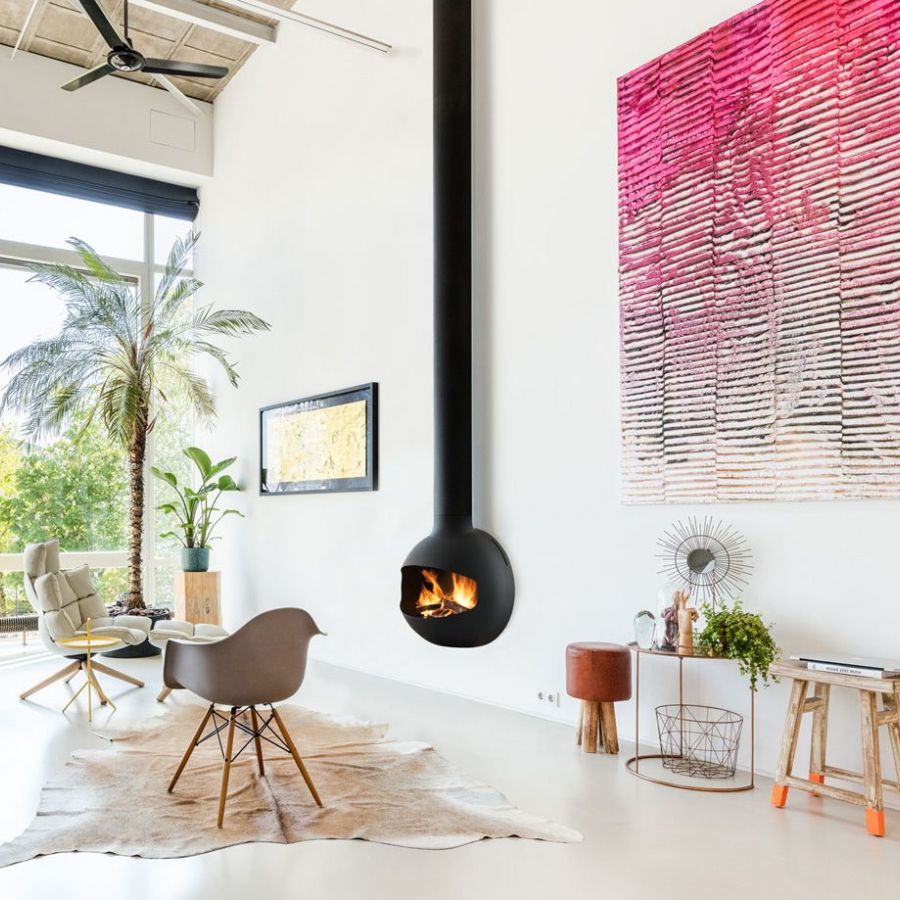 Disponible en finition noir mat, l'Emifocus Ouvert DV fonctionne au bois et s'adapte parfaitement aux atmosphères intimistes.