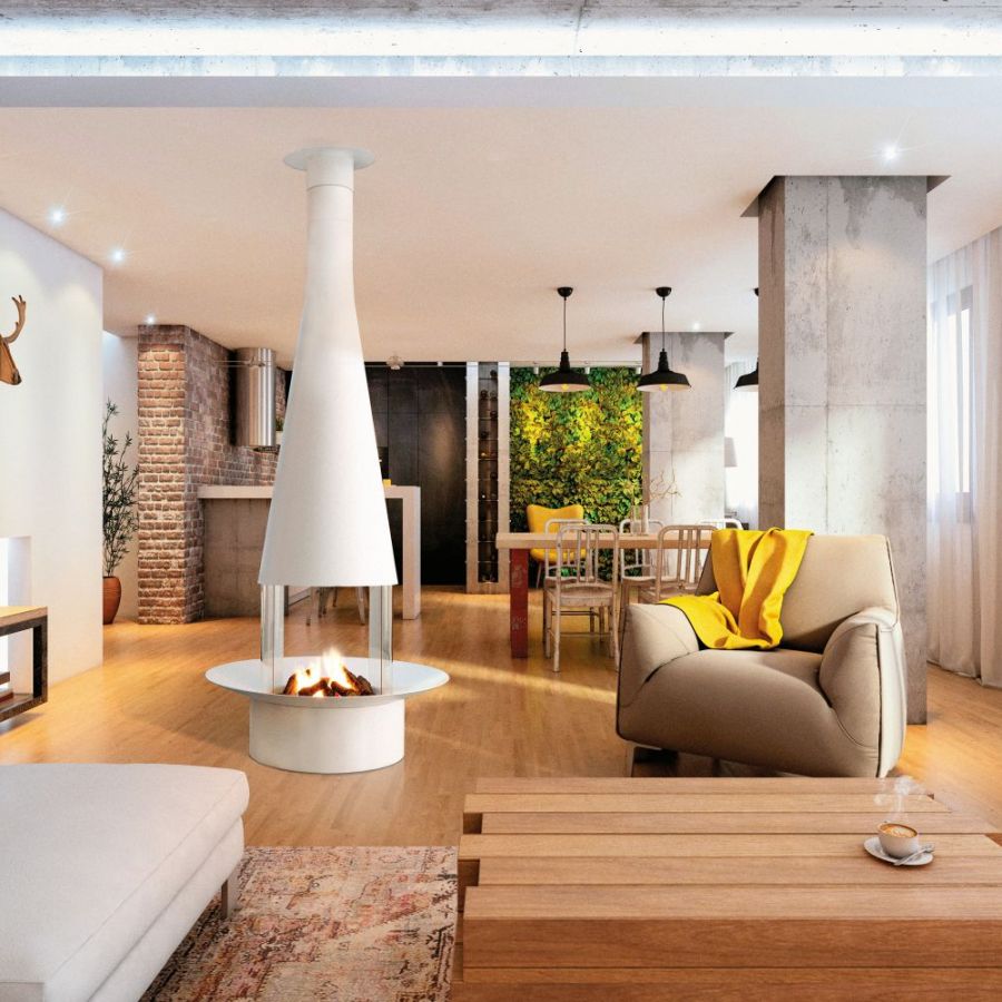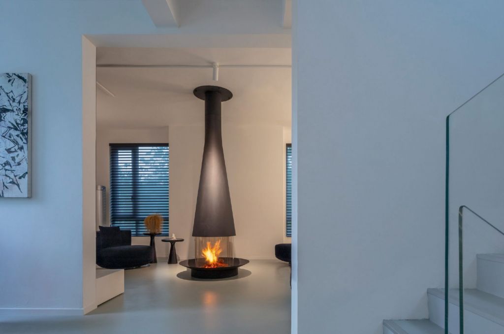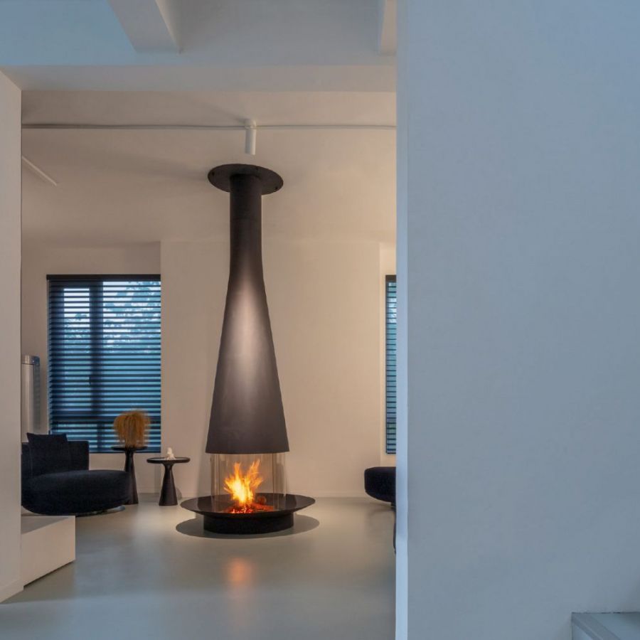 La cheminée centrale vitrée Filiofocus 1600 de Focus est une œuvre d'art fonctionnelle, alliant design contemporain et performance.