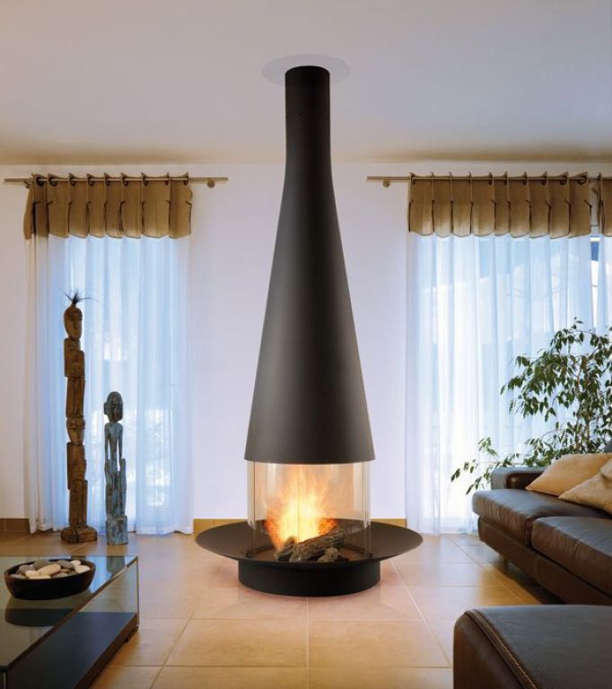Disponible en versions bois et gaz, la Filiofocus 1600 se distingue par sa hotte conique de 1600 mm.