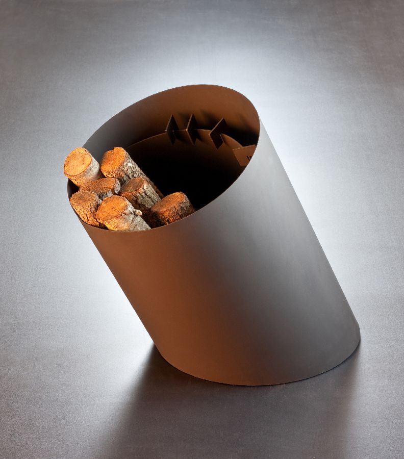Le porte bûche qui defie l'apesanteur par sa forme atypique et ses coubres délicates.