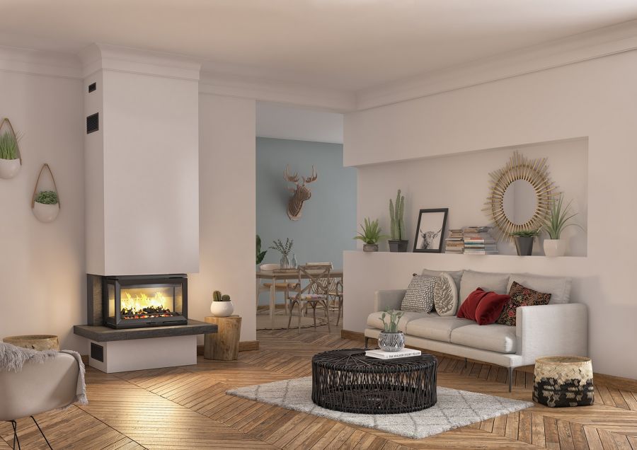 Le Jøtul I 620 FRL est un insert bois premium à triple vitrage (façade, côté droit et côté gauche), offrant une vision à 180° des flammes pour une ambiance spectaculaire et chaleureuse.