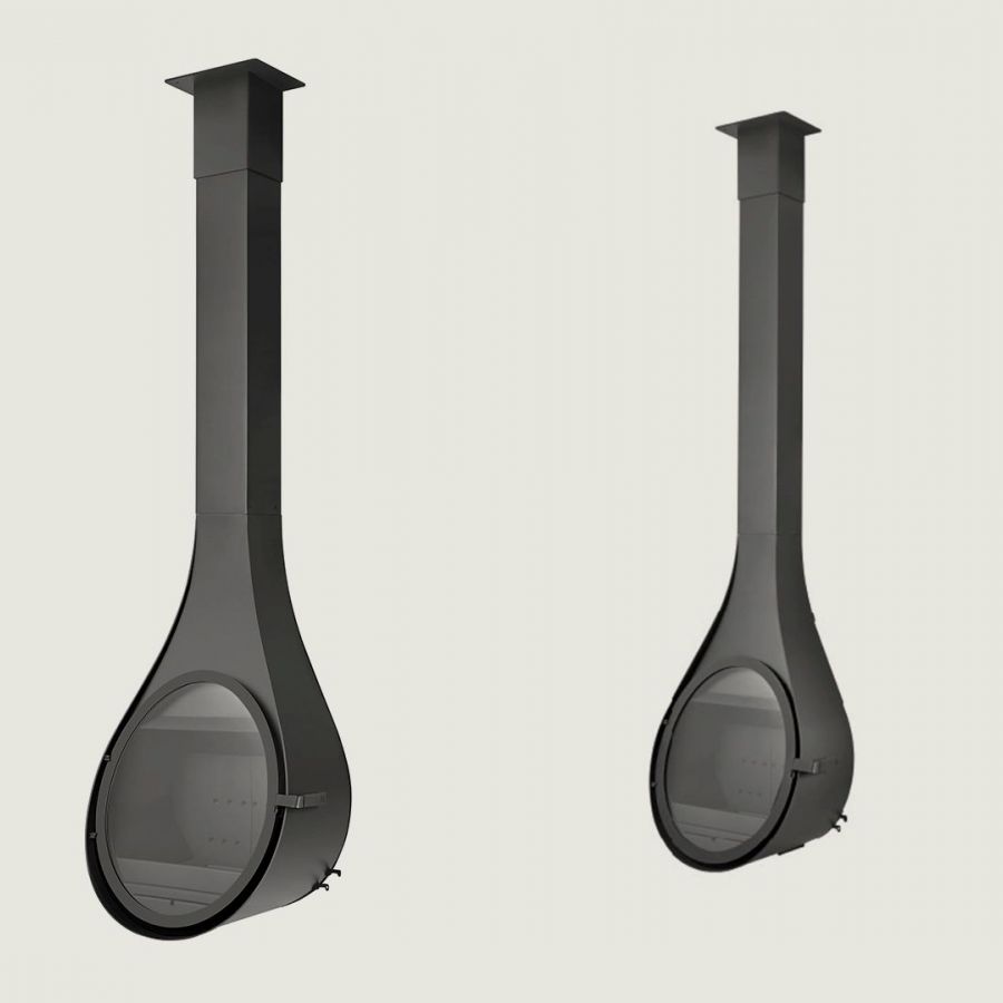 Fixé au plafond, il flotte avec légèreté dans l’espace, captant naturellement le regard et structurant la pièce avec caractère. Sa forme organique et sa vaste ouverture vitrée offrent une vue fascinante sur les flammes, tout en assurant une diffusion homogène et efficace de la chaleur.