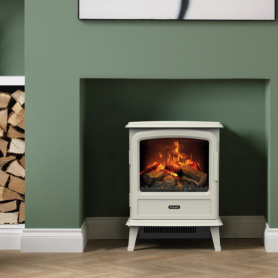 Le poêle électrique Evandale Pebble de Dimplex séduit par son design élégant aux lignes douces et son insert effet galets pour une ambiance apaisante.
