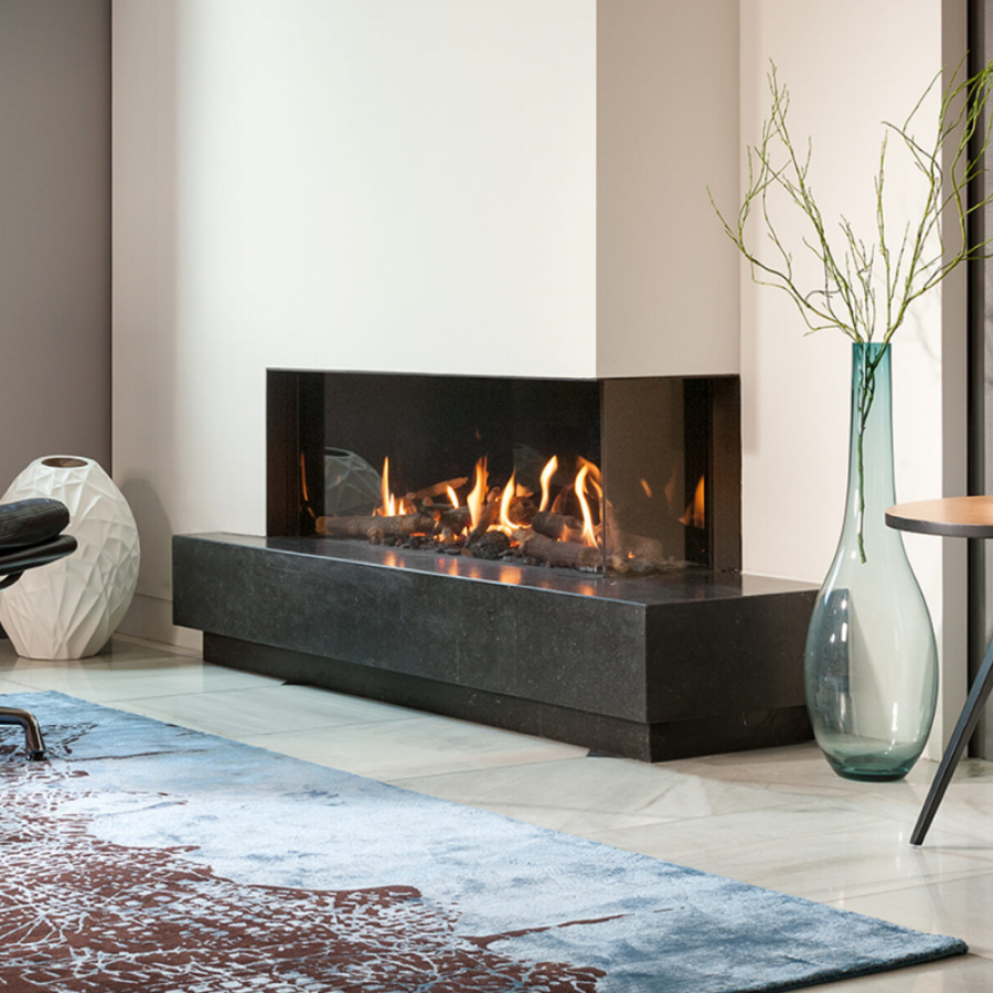 Kalfire G105/37C : Foyer gaz en coin – Vision étendue et design contemporain