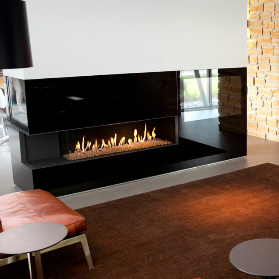 Kalfire G125/37C : Foyer gaz en coin – Format panoramique et élégance personnalisée
