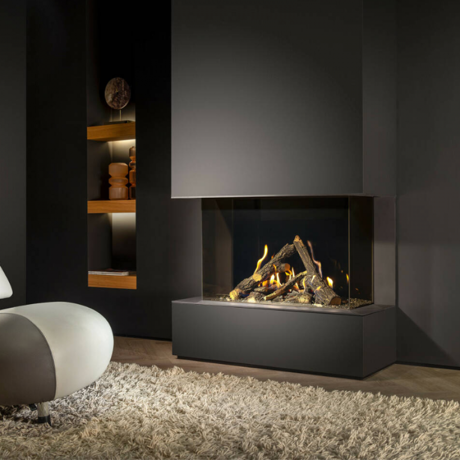 Kalfire Gi 115/55S : Foyer gaz 3-côtés – Vision panoramique et réalisme EmberGlow