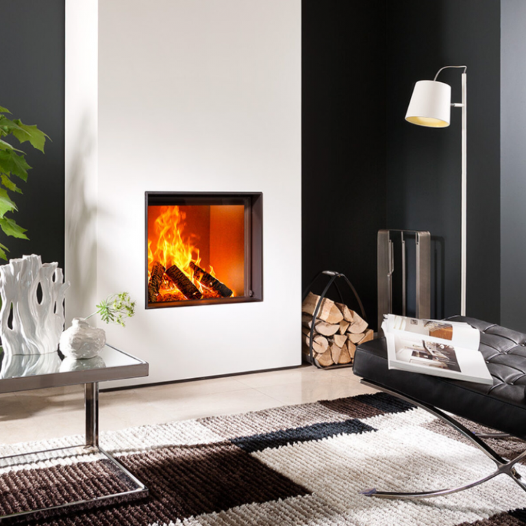 Équipé en standard d’un intérieur en skamol et d’un contre-cadre discret de 2,5 cm, il peut être personnalisé avec un intérieur lamelles ou design, ainsi que différents formats de contre-cadres. Côté performance, il affiche un rendement de 81 %, une puissance modulable de 6,6 à 13,2 kW et un indice d’efficacité énergétique (EEI) de 107, correspondant à la classe énergétique A+. Il offre ainsi un chauffage au bois efficace, écologique et élégant.