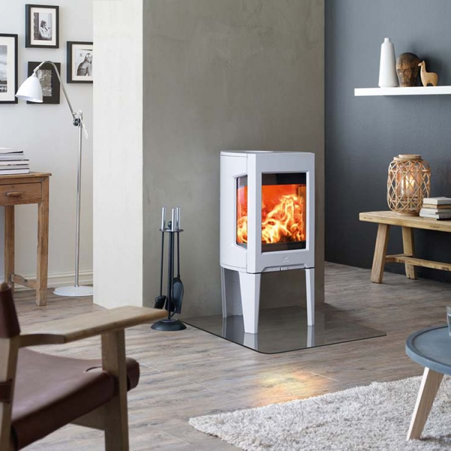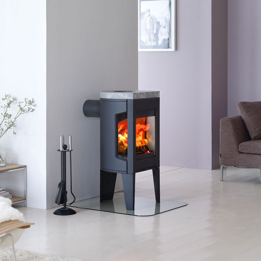 3 pieds pour un look original et 3 vitres pour une vue epoustouflante sur les flammes !
