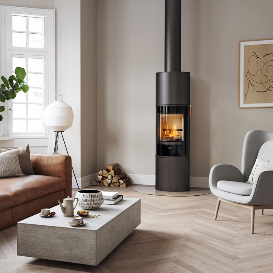 Le Scan 84 Modern Maxi séduit par son design minimaliste, sa forme cubique élégante et surtout par son foyer grand format qui offre une vision panoramique exceptionnelle des flammes. Sa porte vitrée sérigraphiée s’intègre parfaitement dans la façade, soulignant la pureté du style scandinave. Avec une puissance de 5 kW, ce poêle à bois est conçu pour chauffer efficacement de grands volumes, tout en assurant un excellent rendement et une combustion propre. Il répond aux normes Ecodesign 2022 et bénéficie du label Flamme Verte 7 étoiles, gage de performance environnementale. Le Scan 84 Modern Maxi est un choix idéal pour ceux qui souhaitent associer design contemporain, grand confort thermique et sobriété architecturale.