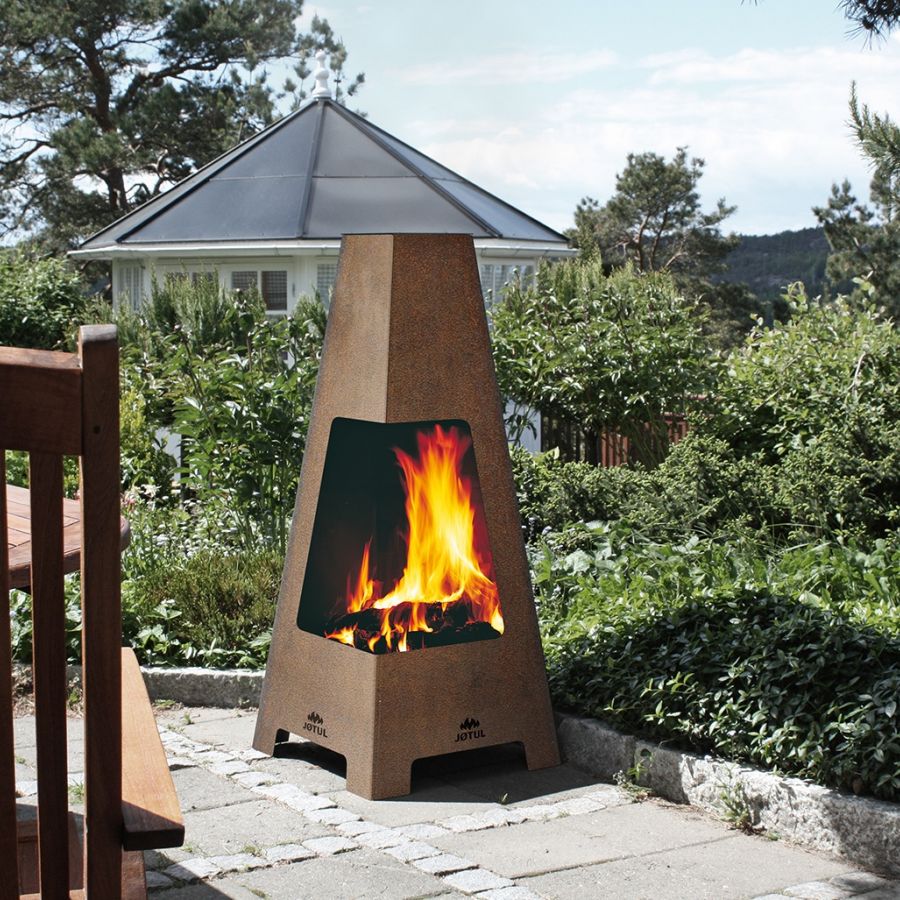 La cheminée bénéficie d’un design unique, avec une large ouverture des deux côtés offrant ainsi une vue spectaculaire sur le feu. Le Jøtul Terrazza est composé d’acier Corten, qui après une courte durée à l’extérieur développe une surface corrodée qui souligne toute l’élégance du produit. La corrosion a un effet protecteur qui vous permet de laisser votre cheminée à l’extérieur tout au long de l’année. L’acier Corten est également utilisé pour les façades de bâtiments pour son effet « rouillé ».