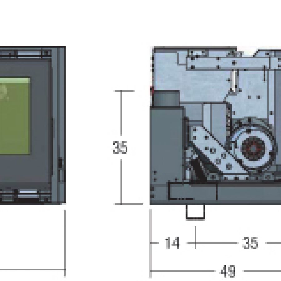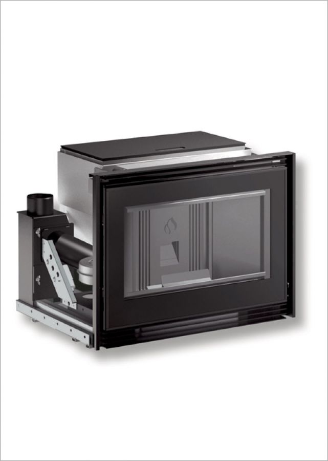 - Chauffage breveté Multifuoco System ®, avec 2 ventilateurs pouvant fonctionner séparément, 3 vitesses de ventilation programmables, possibilité de fonctionnement avec programmation de la température ambiante relevée par la télécommande, bouche de sortie d’air chaud frontale en partie basse et 1 sortie pour la distribution en partie arrière avec accessoire en option