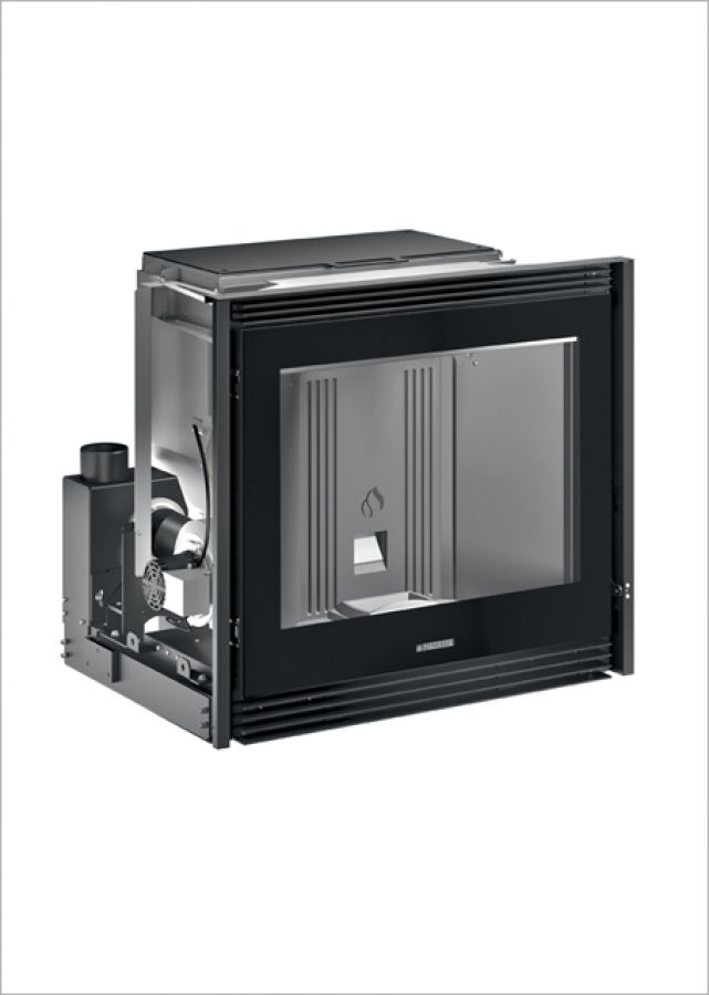 - Chauffage breveté Multifuoco System®, avec 2 ventilateurs pouvant fonctionner séparément, 3 vitesses de ventilation programmables, possibilité de fonctionnement avec programmation de la température ambiante relevée par la télécommande, bouche de sortie d’air chaud frontale en partie basse et 1 sortie pour la distribution en partie arrière avec accessoire en option