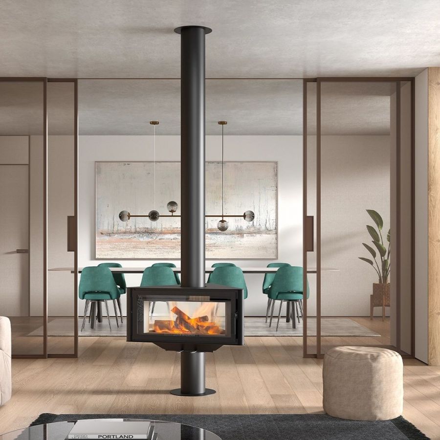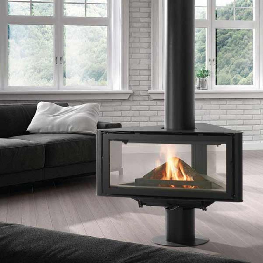 Sa silhouette épurée, soulignée par un piètement fin ou une base plus massive selon les configurations, s’intègre aussi bien dans des intérieurs contemporains que plus rustiques. Grâce à une large vitre frontale et un foyer spacieux, il offre une vue généreuse sur les flammes et une excellente diffusion de chaleur.