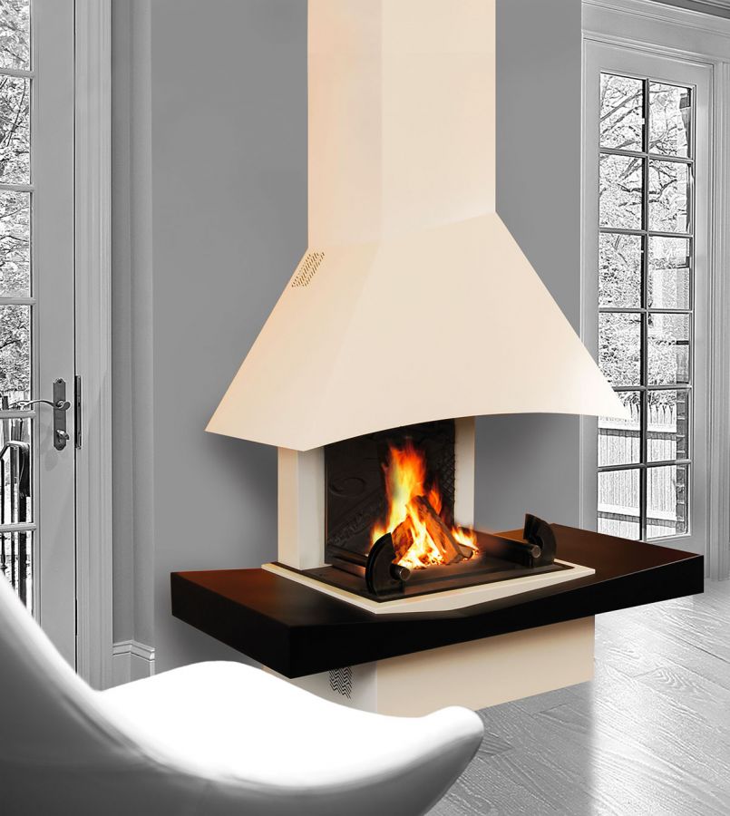 Couleurs standards hotte et socle : noir 2100 sablé et dalle foyère gris 2500 sablé