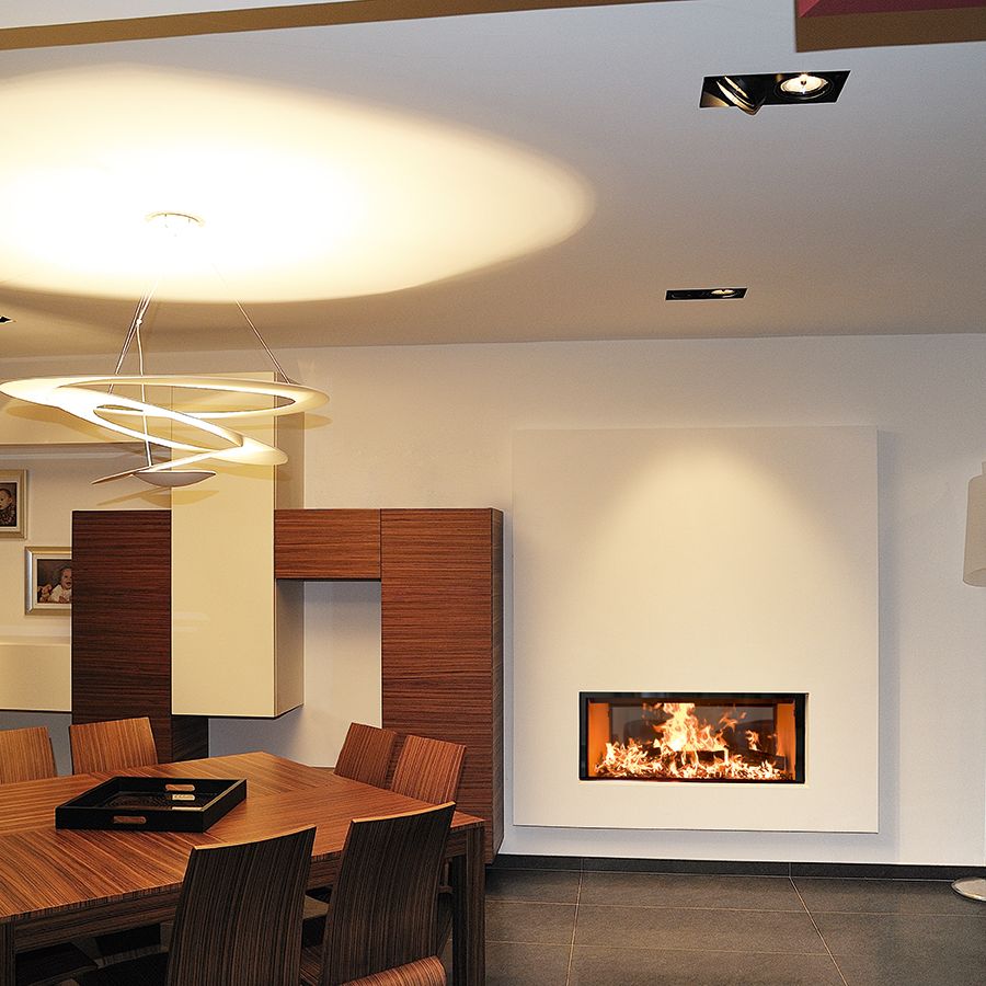 Ces cheminées bois ont une porte escamotable automatique, une combustion optimale, un réglage précis de la combustion, une deuxième porte décorative automatique : pare-feu, un cadre solide de 8 mm et des parois en acier ou en fonte.