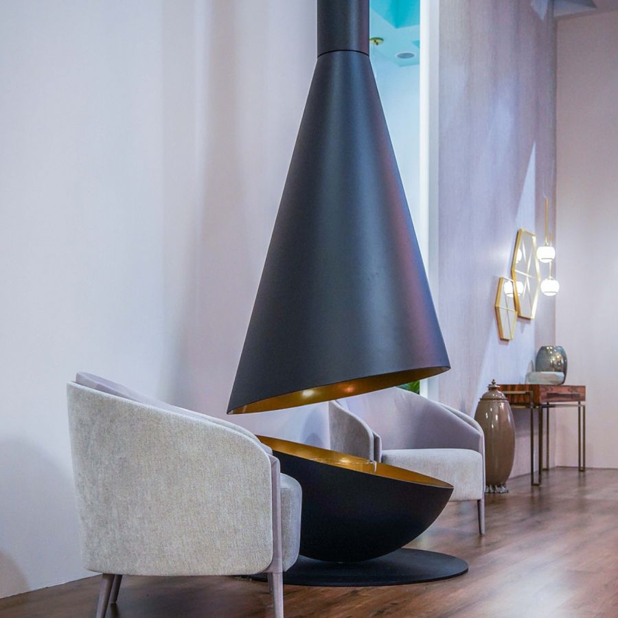 D’un design sculpturale et simplement charismatique, le Thales ne laisse personne indifférent. La première cheminée suspendue au monde avec brûleur électronique au bioéthanol, conçu à partir d'un cercle, est une pièce polyvalente et ajustable qui révèle la beauté de la vision intégrale de la flamme.