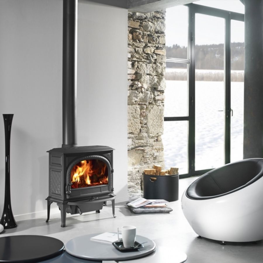 Le poêle à bois Jøtul F 400 ECO SE est l’un des poêles les plus larges proposés sur le marché norvégien avec une chambre de combustion pouvant accueillir des bûches de 50 cm. Ce poêle à bois possède une large vitre sans arche vous offrant une superbe vue sur les flammes et concentre tout le savoir faire norvégien. Côté pratique, il propose un cendrier rétractable évitant la dispersion des cendres. Pour convenir à tous les styles d’intérieurs, il est disponible en version peint noir mat, émaillé bleu noir, émaillé brun majolique ou émaillé ivoire.